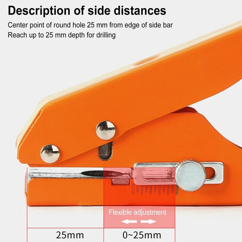 This heavy-duty single hole puncher is designed for precision and durability, offering a smooth, non-stick punching experience. With its adjustable depth control, reinforced high-strength spring, and upgraded punch design, it ensures a clean hole with minimal effort. Perfect for various materials, this portable puncher is ideal for edge banding, PVC, hard film, and wood veneer applications.