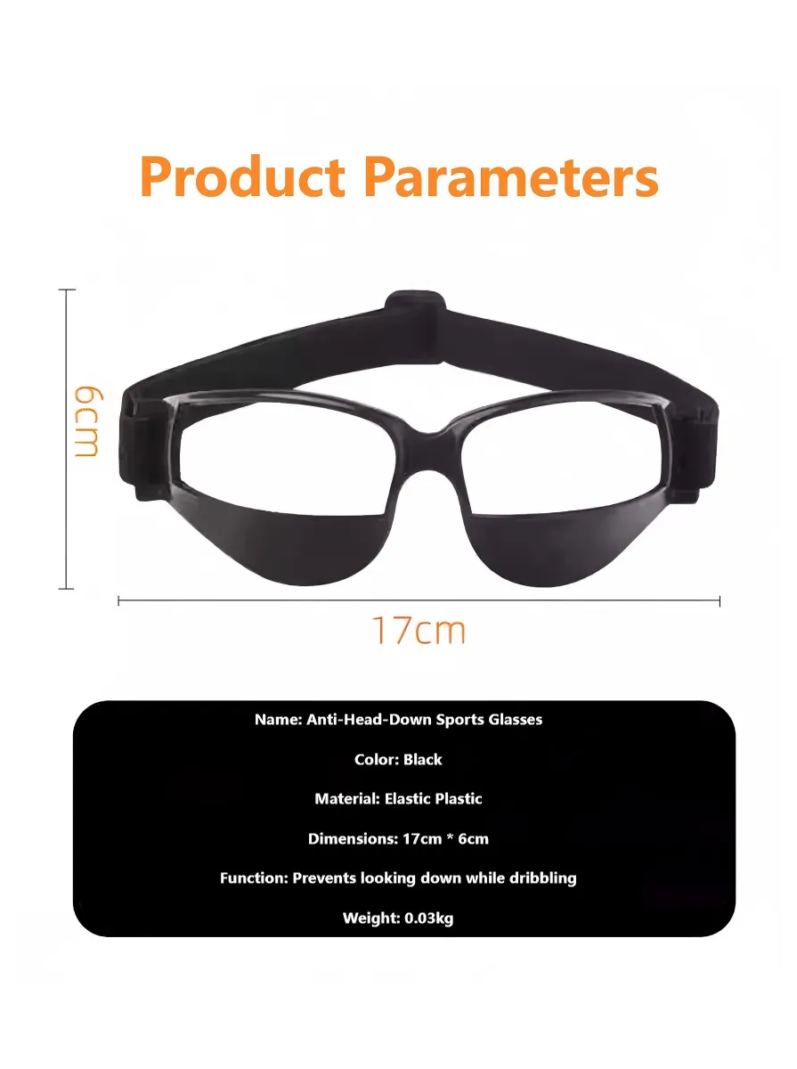 The Black Basketball Anti-Slip Goggles are a specialized training tool designed to help players develop proper court vision and dribbling technique by preventing the instinct to look down at the ball. These sport glasses feature a strategic, non-transparent lower section that blocks the wearer's direct downward line of sight while maintaining clear forward and peripheral vision. With dimensions of 17cm in width and 6cm in height, they fit securely and comfortably, making them an essential piece of training equipment for athletes aiming to improve ball-handling confidence and on-court awareness.