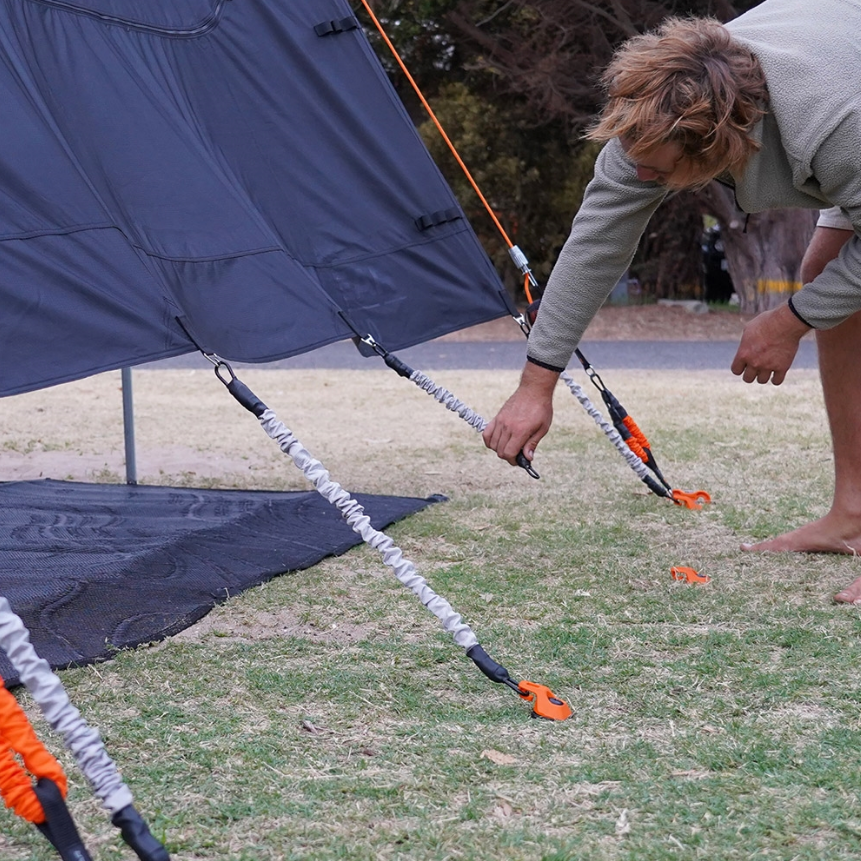 The easiest way to secure your privacy screen and keep your campsite tidy!