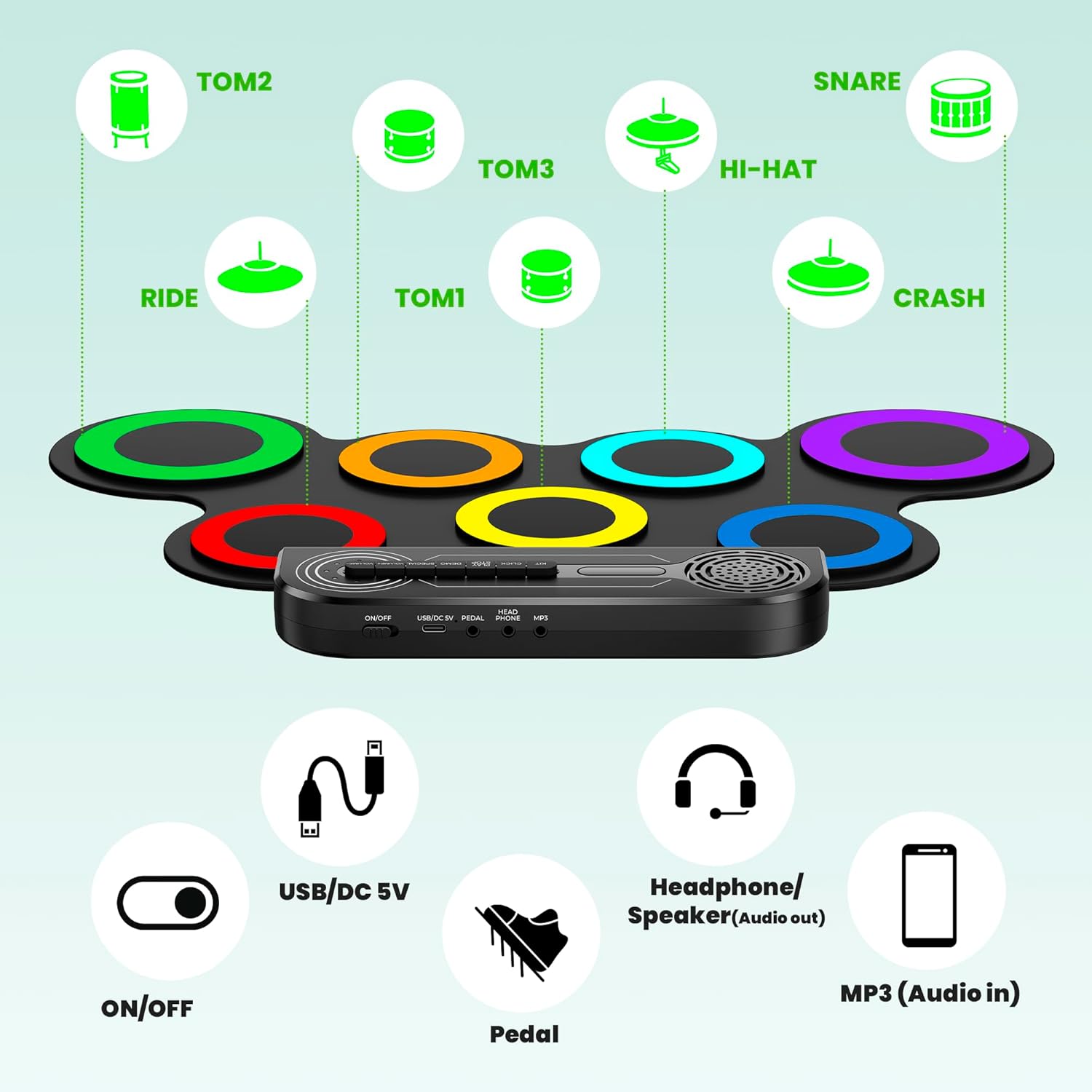 • Product Name: Electric Drum Set – Portable Roll-Up Practice Pad